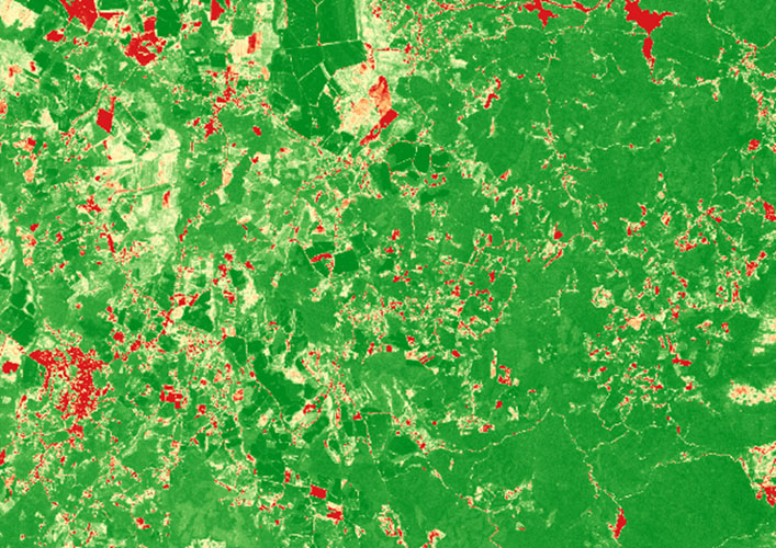 Um dos produtos mais utilizados pelos grandes agricultores são aqueles derivados da análise em infravermelho, como por exemplo, o Índice de Vegetação da Diferença Normalizada: através da divisão de bandas, o índice revela os diferentes níveis de concentração da vegetação.